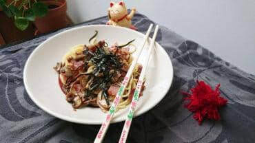 Spaghettis à la mode japonaise aux champignons et lardons